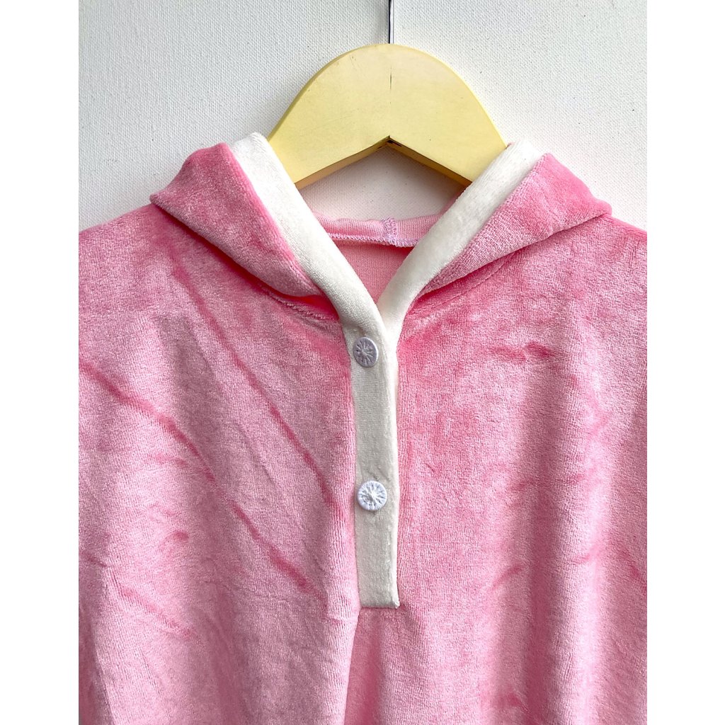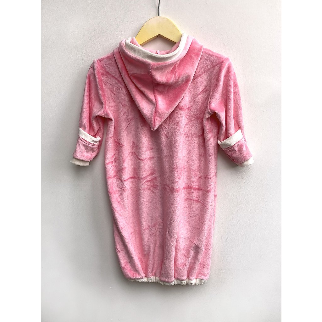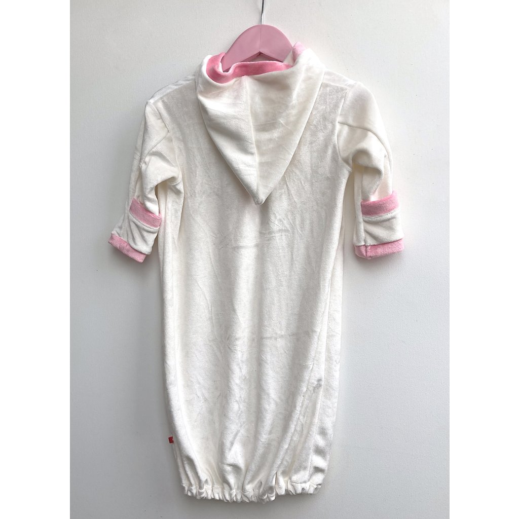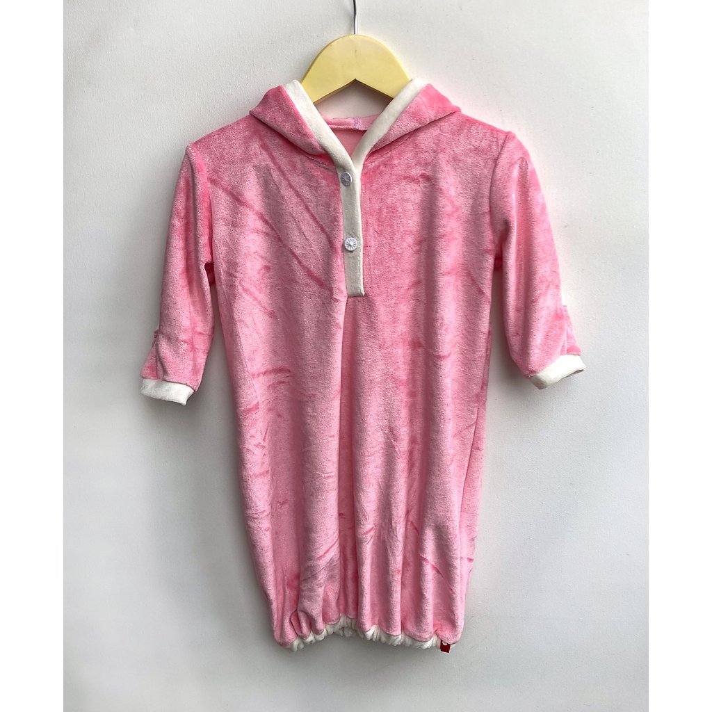 Novorozenecká noční košilka s kapucí ve velikosti 0-6 měsíců. Zpočátku je miminko v košilce celé zabalené jako v pytli, košilka má i přehrnovací rukávky, díky kterým má miminko ruce v teple a navíc se nepoškrábe. Postupně, jak miminko roste, se ze spacího pytle stává košilka, která mu může vydržet až do jednoho roku. Spodní lem košilky je stažený do gumy, aby držel pod nožičkami a zároveň umožnil jednoduché přebalování.