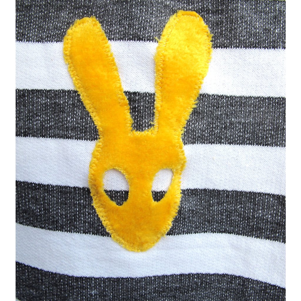 V bílé a tmavošedé barvě, se žlutými detaily a nášivkou zajíce, na zip.