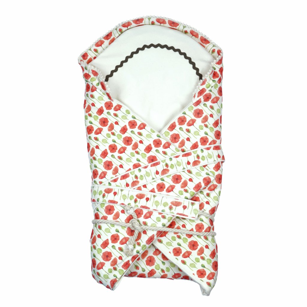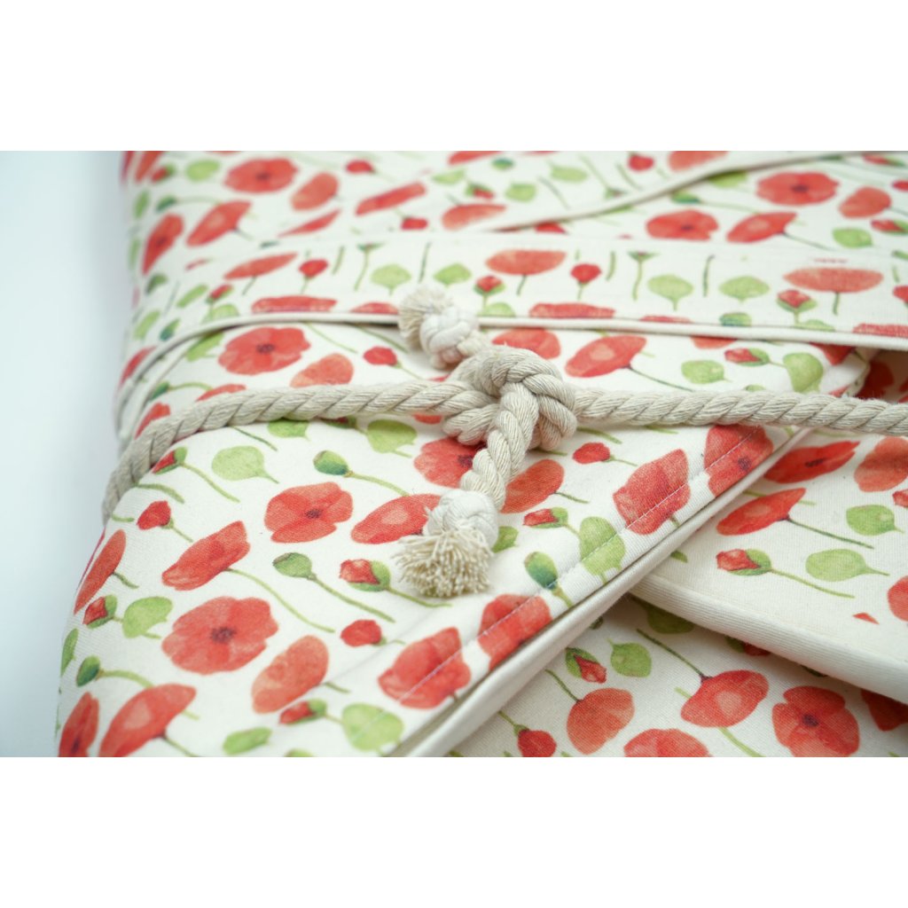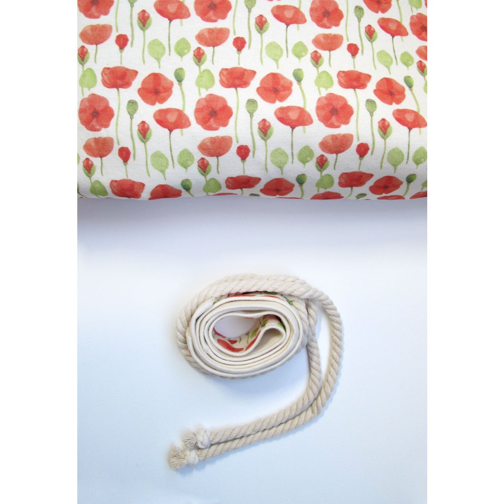 Čtvercová novorozenecká zavinovačka / peřinka slouží na zavinování tradičního stylu. Díky samostatnému zavazování ji můžete používat jako klasickou zavinovačku, nebo jako peřinku do kočárku nebo cestovní postýlky. Krásný vzor vlčích máků, úplet české výroby od české designérky.